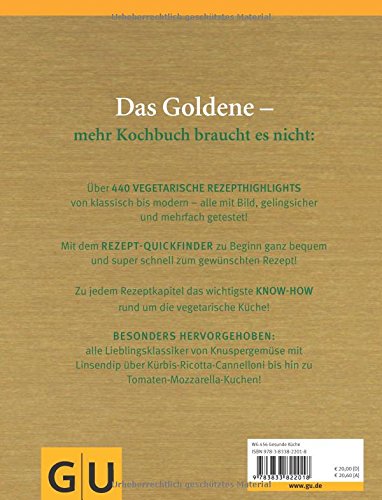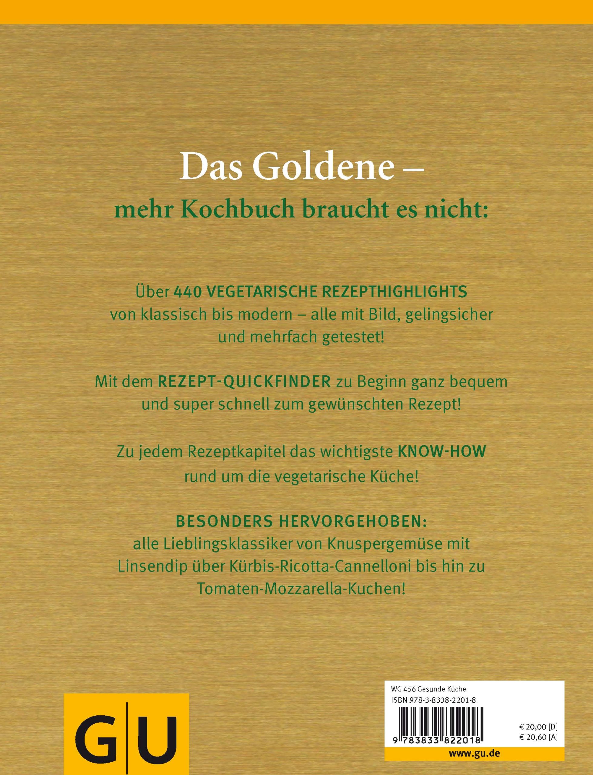 Was finden Jeden-Tag- und Teilzeit-Vegetarier gleichermaßen öde? Immer nur mit Beilagen à la Nudeln mit Sauce und Soja-Bratlingen aus dem Reformhaus abgespeist zu werden! Und zig Kochbücher wälzen zu müssen, wenn es um das tagtägliche Kochen geht – also heute was Schnelles angesagt ist, morgen Gäste vor der Tür stehen und übermorgen Kinder mitessen. Bisher gar nicht oder nur sehr mühsam fündig geworden? Dann heißt die komfortable Lösung ab sofort: Vegetarisch! Das Goldene von GU. Mit über 400 Rezepten von heiß geliebten Klassikern bis modernen Kreationen für absolut jeden Anlass und – das ist der Clou – einem Rezept-Quickfinder gleich zu Beginn! Damit finden Sie Ihr vegetarisches Rezept schnell und bequem, für garantiert jede Kochlust, Esslaune und Hungersituation! Das Beste: Sie sparen nicht nur wertvolle Such-Zeit, sondern auch bares Geld, denn das 512-Seiten-Rundum-Sorglos-Paket kostet nur 20 Euro! Darum: Vegetarisch! Das Goldene von GU – mehr Kochbuch braucht es nicht!
