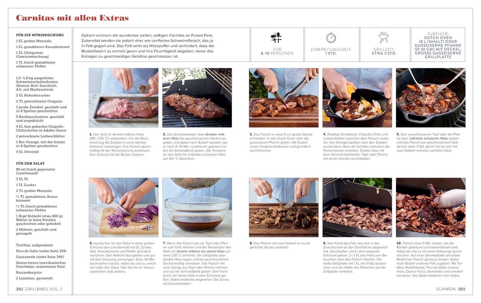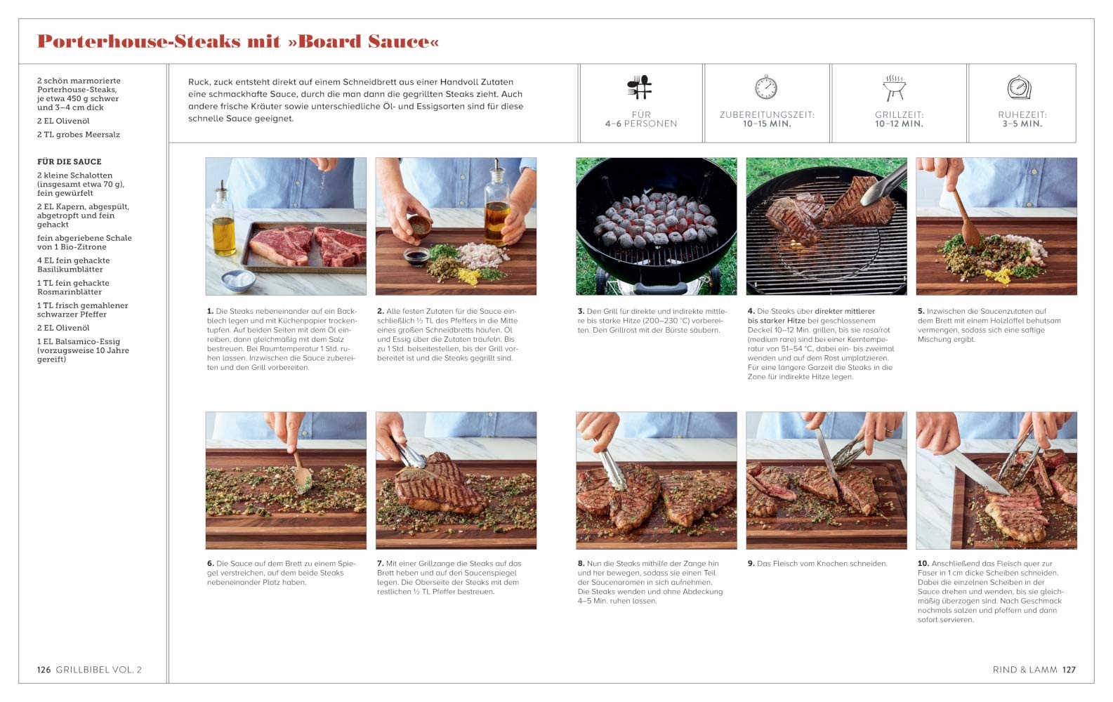 Üppig wie ein Tomahawk-Steak präsentiert Jamie Purviance seinen neuesten, prall bebilderten Coup: Weber’s Grillbibel Vol.2 – die große Grillschule. Wer vom Grillfieber noch nicht befeuert ist, bekommt spätestens jetzt Heißhunger auf die Köstlichkeiten vom Rost: einfacher und leckerer war Grillen noch nie. Jedes Rezept, jeder Kniff wird mit Step-Fotos erklärt. Damit können auch Anfänger dem Grillmeister quasi direkt über die Schulter schauen und alle Zubereitungsarten sofort umsetzen. Von Fleisch, Gemüse, Fisch, Meeresfrüchten bis zu Dips, Salaten, Toasts, Burger, Pizza und Desserts reicht das Spektrum – es gibt nichts, was mit Weber nicht gegrillt werden könnte. Mit den Ideen für würzige Variationen lassen sich die Grundrezepte immer wieder überraschend anders aromatisieren. Avocado-Bruschetta mit Zitrone, Hawaiian Style-Cheeseburger, Hoisin-Ingwer-Steak, Honig-Teriyaki-Rippchen, Lachs mit Orangen-Gremolata, Tandoori-Blumenkohl oder Bananen-Split mit Salzkaramell lassen den gewöhnlichen Herd alt aussehen!